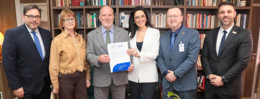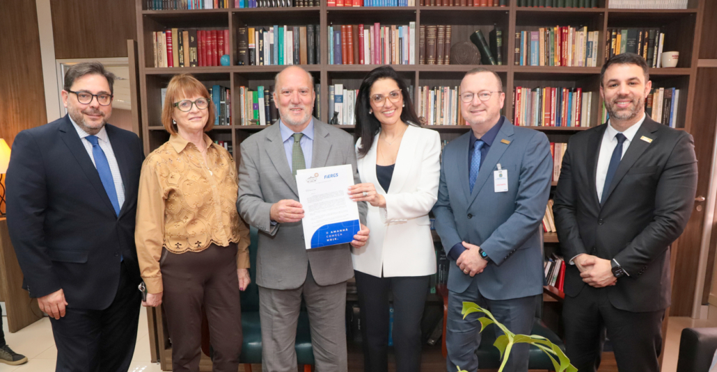 Nesta segunda-feira (3/11), representantes da Fiergs e da Satergs compareceram ao TRT-RS para formalizar o convite ao presidente. Estiveram presentes o coordenador do Contrab, Guilherme Scozziero, o executivo do Contrab, Fábio Vieira, a presidente da Satergs, Márcia Helena Somensi, e o vice-presidente da Satergs, Camilo Gomes de Macedo. A vice-corregedora do TRT-RS, desembargadora Maria Madalena Telesca, também participou da agenda.